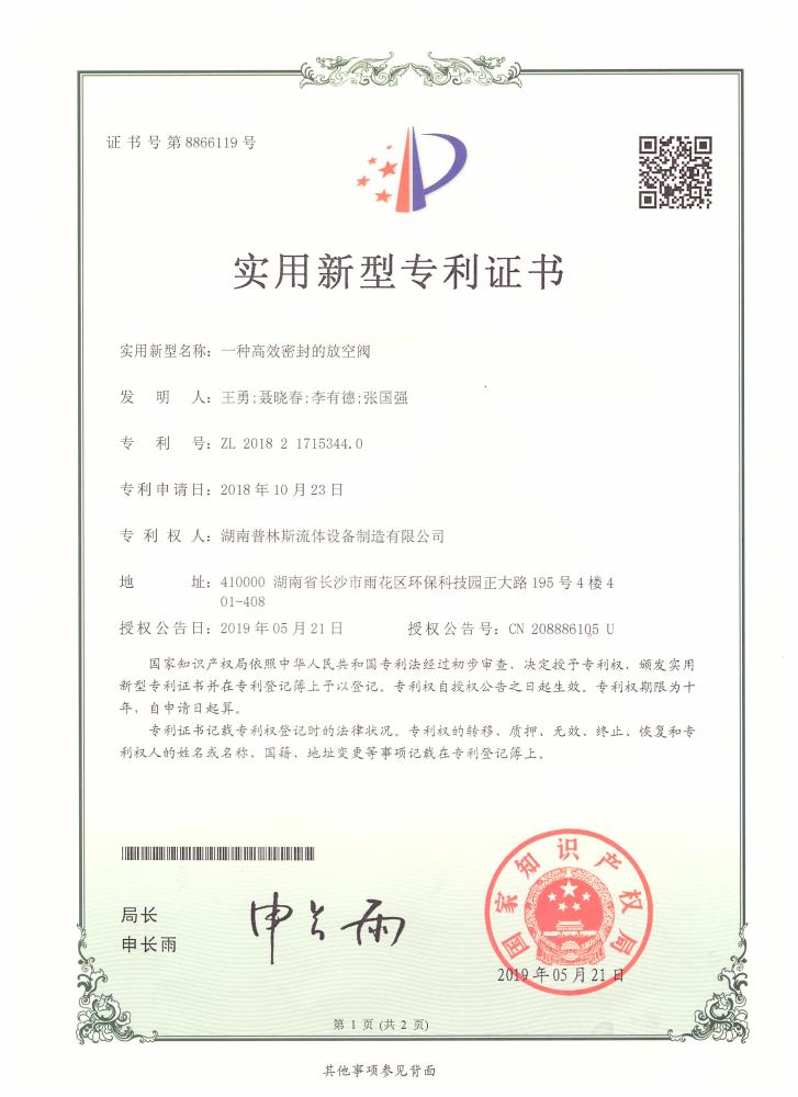 實用新型專利證書